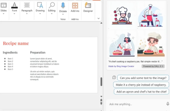 例如:”Create an image: a chief cooking a raspberry pie, flat simple vector illustrations style, vibrant colors, white background”