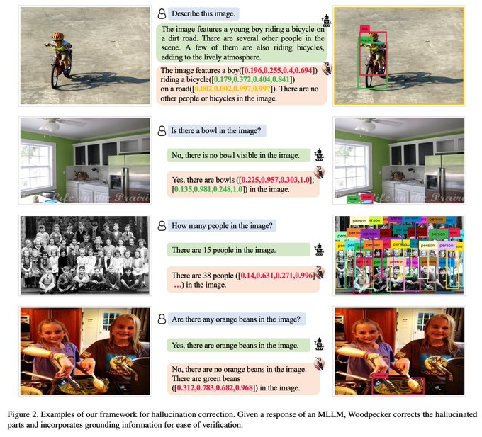 Woodpecker不依赖于重新训练模型或使用特定的数据集,通过一种无需训练的方式来解决这个问题。它是一个后处理步骤,可以应用于任何现有的多模态大型语言模型。